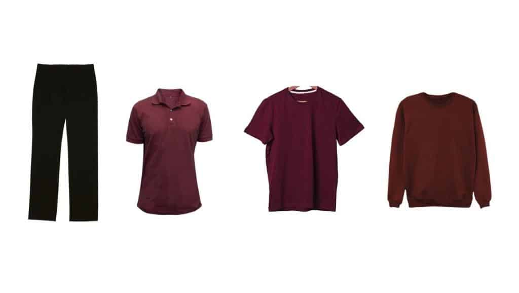 Öğrenciler linkte paylaşılan fotoğrafta görülen kıyafetlerden sadece vişne çürüğü renk Kazak(Sweatshirt), Tişört (polo, sıfır yaka ve kısa kol - uzun kol), ve siyah renk pantolon giyebileceklerdir.