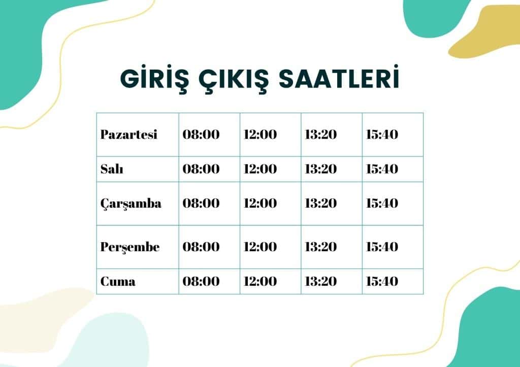 Okul Giriş ve Çıkış Saatleri